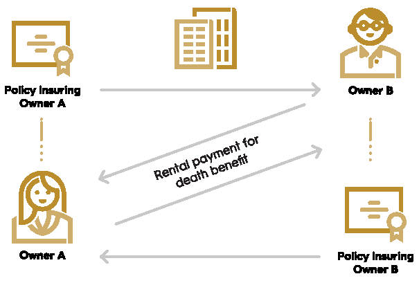 A cross endorsed buy-sell arrangement is a business succession strategy in which the business owners purchase life insurance policies on their own lives, and “rent”1 a portion of the death benefit to the other owners. The rented portion of the death benefit serves as a source of funds with which to purchase the shares of a deceased owner.