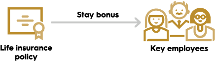 3. The life insurance policy’s death benefit proceeds provide the funds needed for the stay bonus.